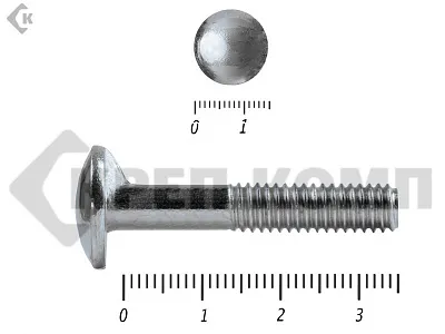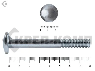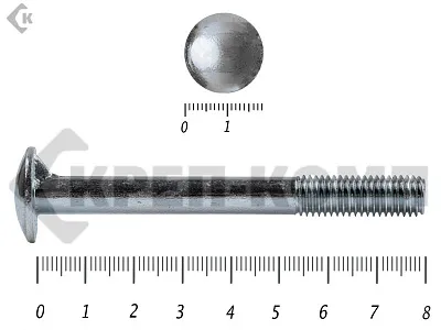 Болт мебельный (DIN 607) с полукруглой головкой и усом, имеет неполную метрическую резьбу. Такие болты, широко используются в мебельном производстве. Также, они применяются для соединения и крепления деталей совместно с гайками, в приборостроении и машиностроении.